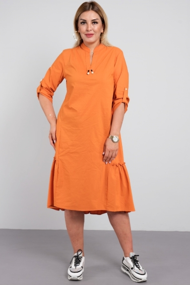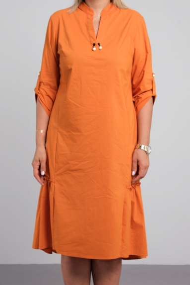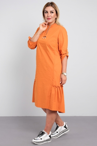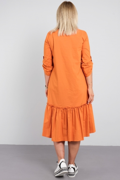Начнем с того, что эта модель отличается необычайной продуманностью и элегантностью. Рельефные вытачки в верхней части платья обеспечивают идеальную посадку, подчеркивая фигуру и создавая стильный силуэт. Переходящие в симпатичные воланы по низу платья придают ему неповторимый шарм, добавляя легкости и игривости в ваш образ. Каждый шаг будет излучать уверенность и утонченность, а мандариновый цвет подарит вам отличный настрой и прогулку под яркими солнечными лучами.