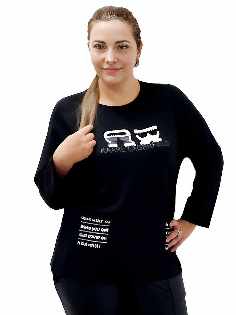 Черный трикотажный джемпер с принтом Karl Lagerfeld x Choupette 52-58