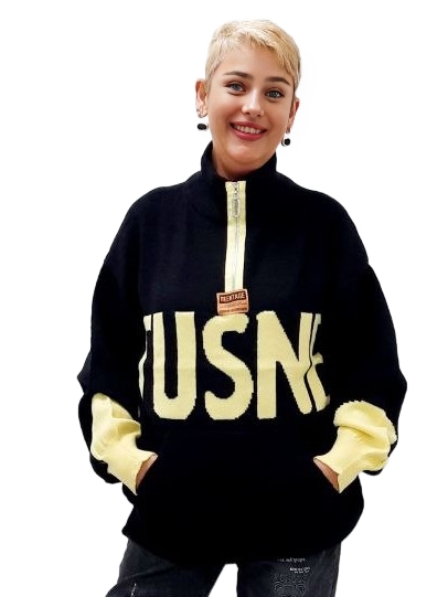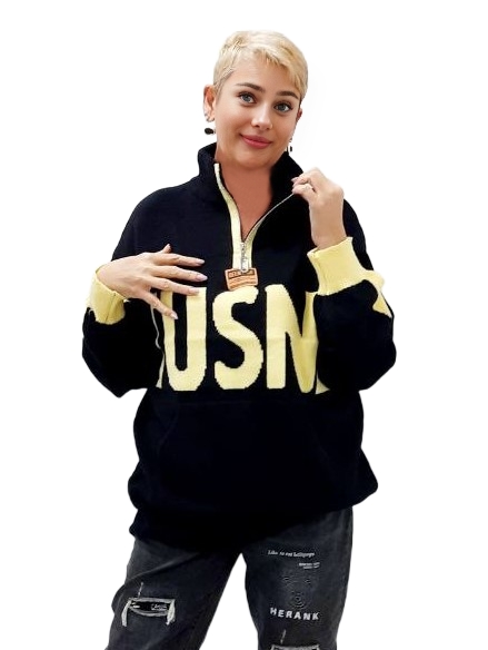 Фото Женская одежда, -Свитера, Джемперы, Пуловеры Стильный чёрно-жёлтый джемпер Yakov Fashion