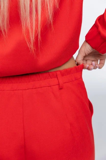 Брюки на запах с удобной широкой резинкой обеспечивают идеальную посадку и свободу движений. Боковые карманы добавляют удобства в повседневной носке. Длина брюк 95 см и ширина внизу 15 см создают элегантный силуэт, подчеркивающий вашу фигуру.