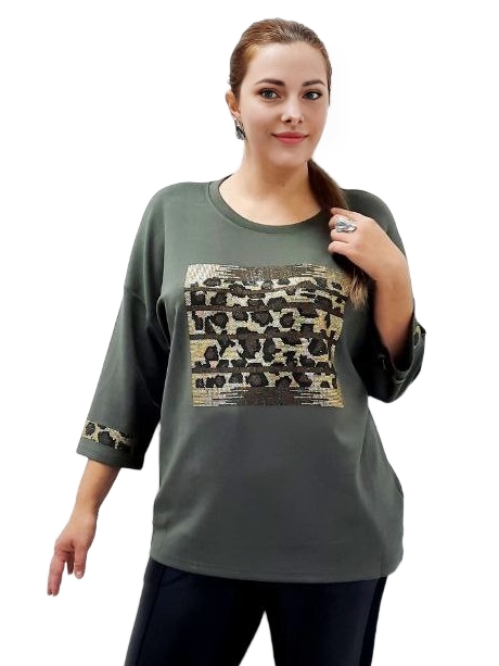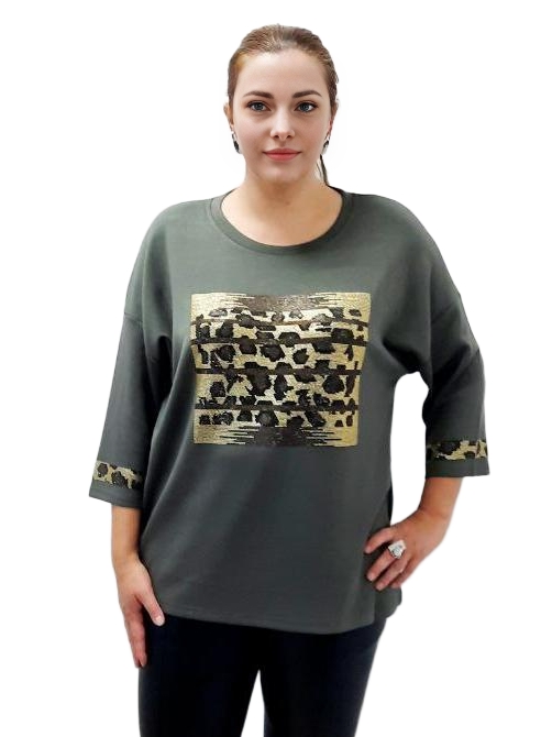 Оливковый трикотажный джемпер с леопардовым принтом