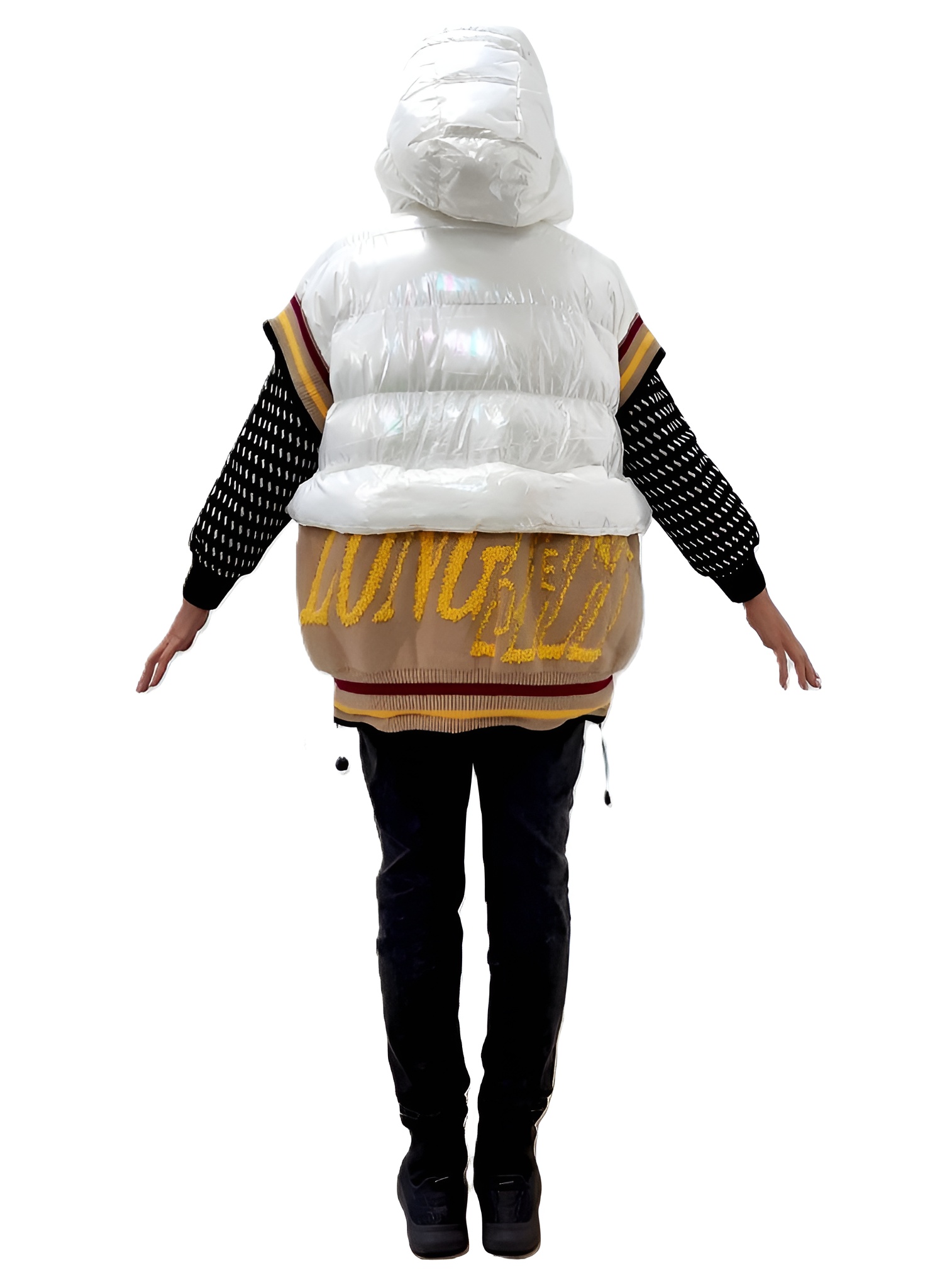 Практичность: Жилет оснащен комфортным большим капюшоном, который защитит от ветра и небольшого дождя. Низ жилетки регулируется кулиской, позволяя создать желаемый силуэт.