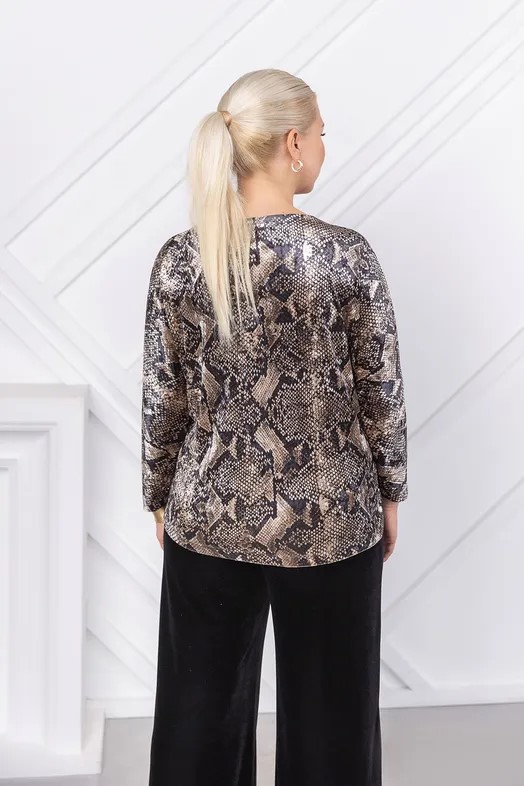 Свитшот ASV арт. 2779 52 Окунитесь в мир роскоши и комфорта с эксклюзивным свитшотом от белорусского бренда ASV. Этот премиальный свитшот – воплощение элегантности и безупречного качества. Изготовленный из уникальной бархатной ткани с имитацией кожи рептилии, он станет ярким акцентом вашего гардероба.